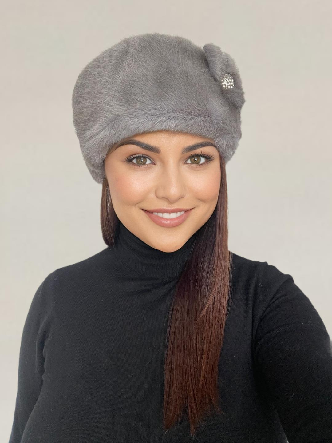 Caciula eleganta din blana LADY LUX (GRI) - marime UNICA, REGLABILA