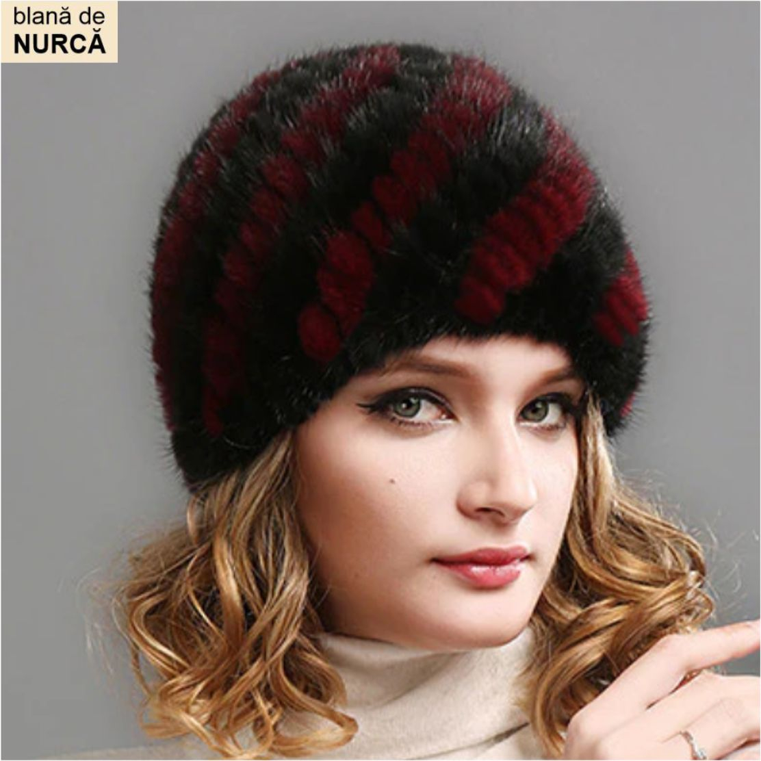 Si tu te poti Si tu te poti bucura de o caciula de blana de calitate, eleganta si moderna alegand noul model de caciula de blana de nurca Princess Lux, un model deosebit cu dungi elegante in GRENA si NEGRU, deopotriva frumos si calduros (cu captuseala groasa pe interior) o caciula de blana deosebit de rafinata, ce va da un aer de eleganta si rafinament aparte oricarei tinute - marime universala