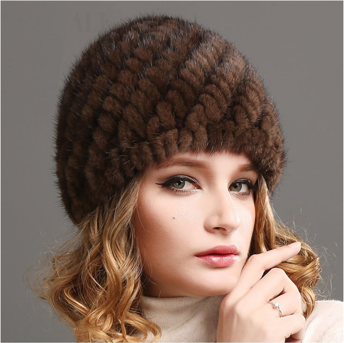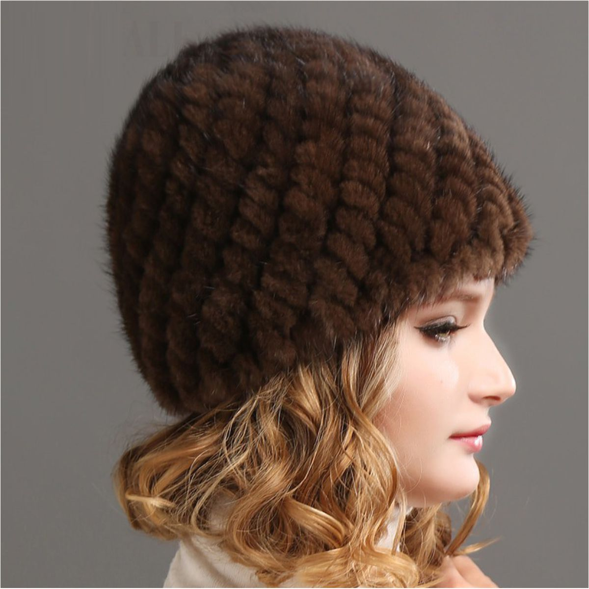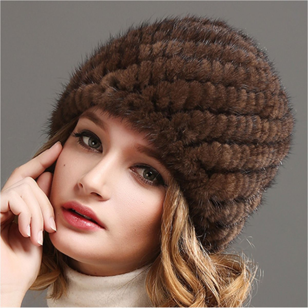 • MODEL: caciula din BLANA DE NURCA croita in stil modern, cu un design deosebit cu linii elegante si impletitura tip ananas
