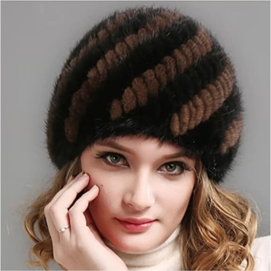 Caciula din blana de NURCA - Sofia Lux (NEGRU + MARO) - marime universala