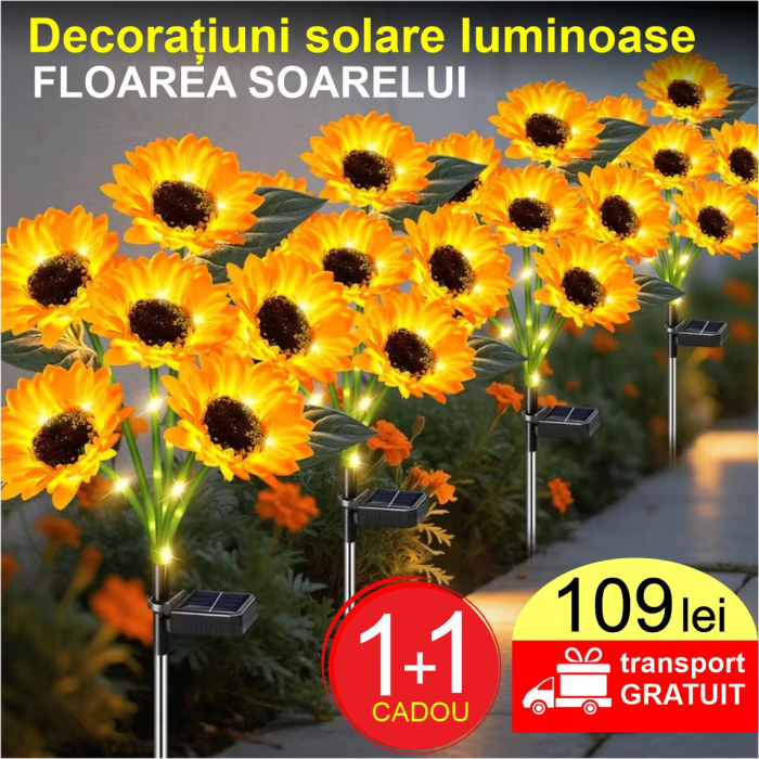 Transformă-ți grădina într-o oază de frumusețe și de lumină cu noile modele de decorațiuni solare de grădină - Floarea Soarelui. Realizate din materiale de calitate și în culori vii, aceste decorațiuni de grădină vor da un farmec deosebit grădinii tale atât pe timp de zi, cât și pe timp de noapte și vor atrage admirația și poate chiar și invidia vecinilor. Alege-le și vei avea numai de câștigat!