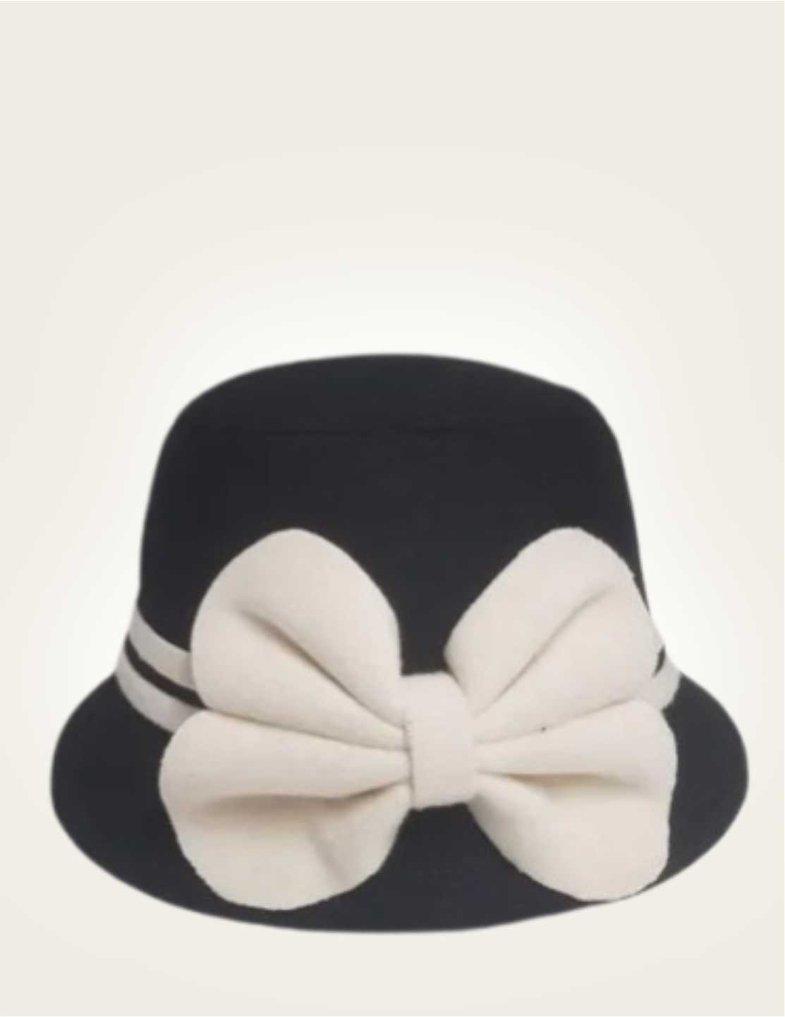 Palarii dama elegante cu boruri mici si funda alba BELLA (NEGRU) - marime unica, reglabila