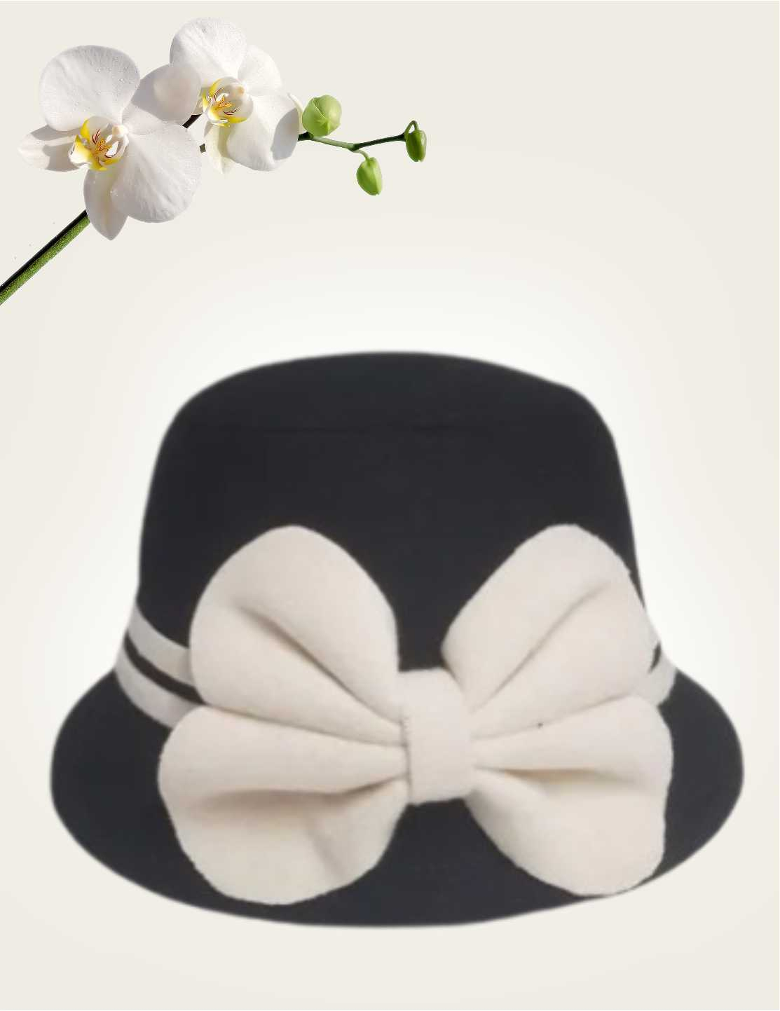 Si tu te poti bucura de o palarie de dama moderna alegandnoul model Bella, o palariedin fetru de calitate, fin si cu prestanta, cu croiala clasica tip clopot, boruri rotunde si decor rafinat cu funda alba, o palarie deosebit de eleganta, cu un nou design, la moda acum - marime unica, reglabila