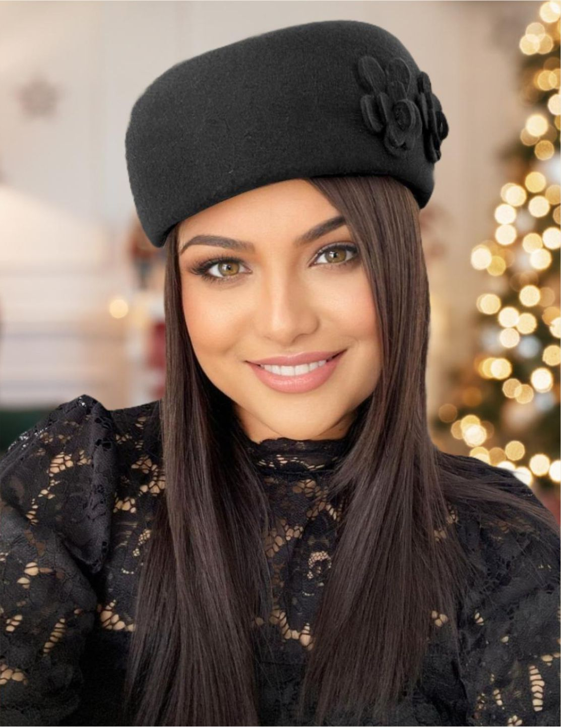 Palarie dama toca din fetru lux MARCHIZA LUX (NEGRU) - marime unica, reglabila