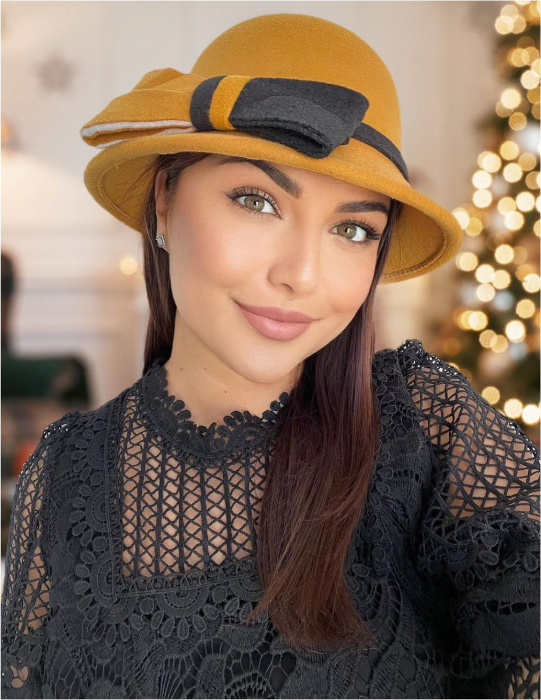 Palarii dama cu boruri mici si funda in 2 culori DUET (GALBEN+NEGRU) - marime unica, reglabila
