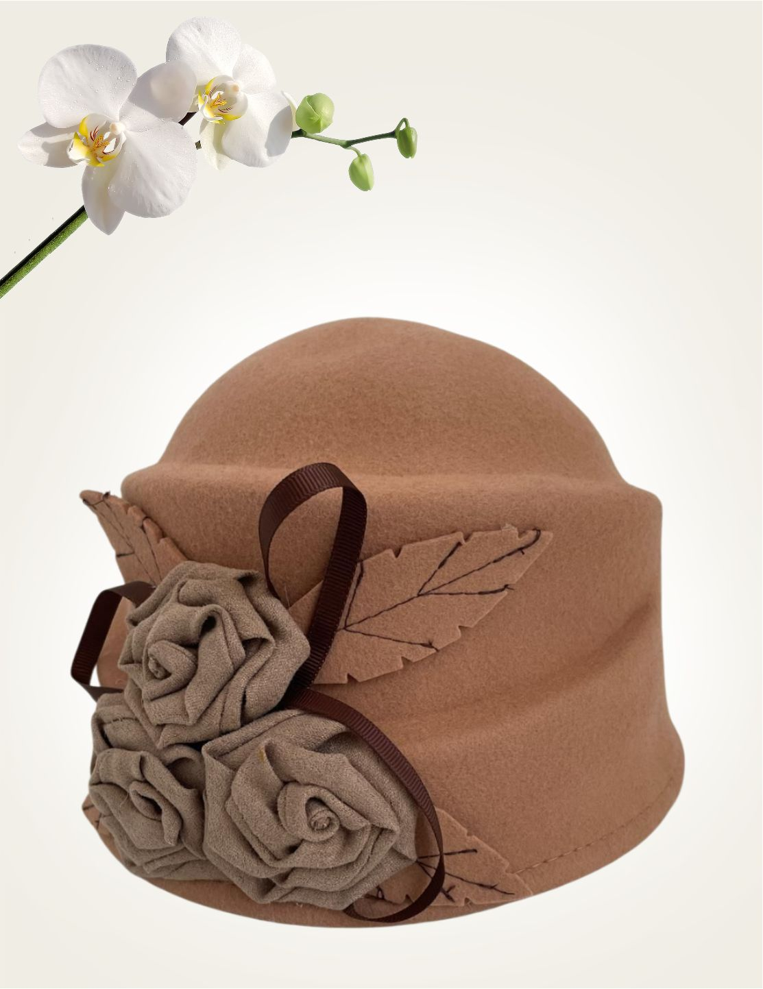 Palarii dama tip toca cu accesorii florale ARIANA (MARO cappuccino) - marime unica