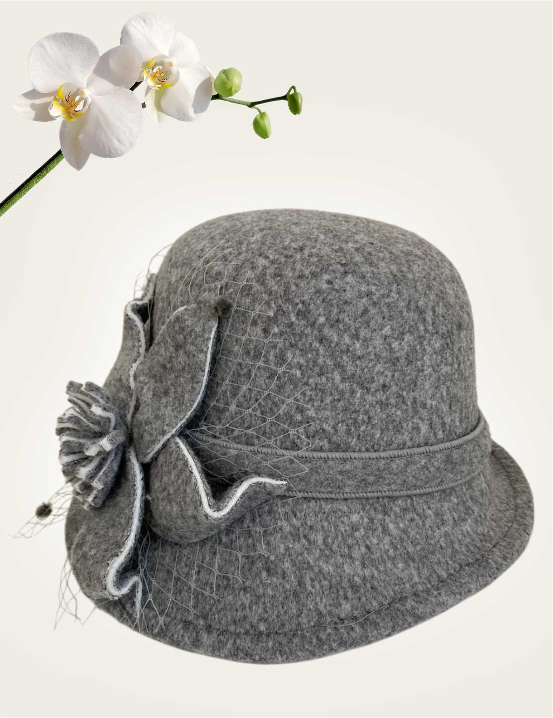 • MODEL: palarie cloche pe colt (± 4 cm)