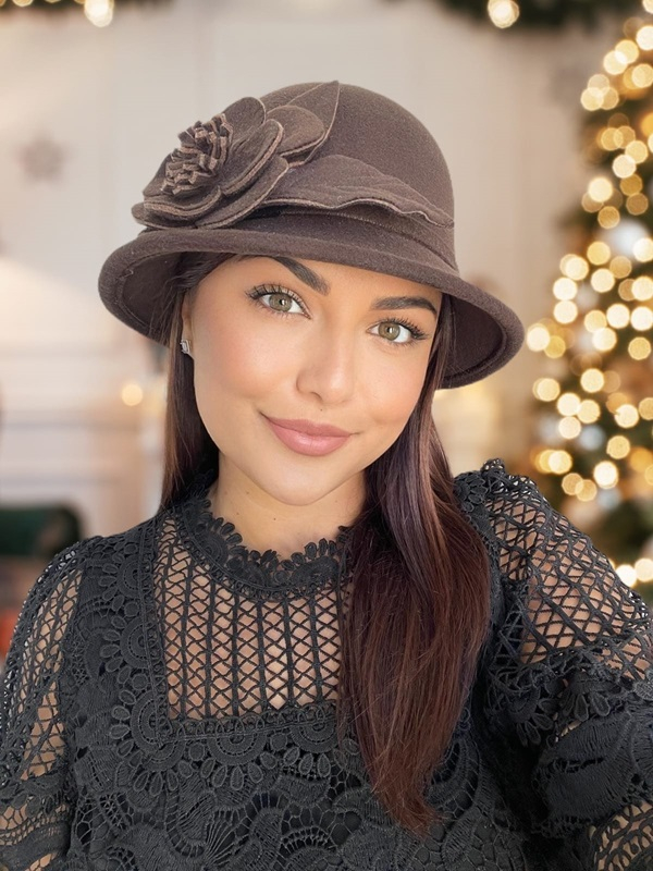 Si tu te poti bucura de o palarie de dama moderna si de calitate alegand noul model Rose Chic, o palarie din fetru de calitate, gros, fin si cu prestanta, cu croiala clasica si  boruri rotunde, mici si usor lasate si rafinat decor floral stilizat, o palarie deosebit de eleganta, disponibila in culori distinse, cu un nou design, la moda acum - marime unica, reglabila