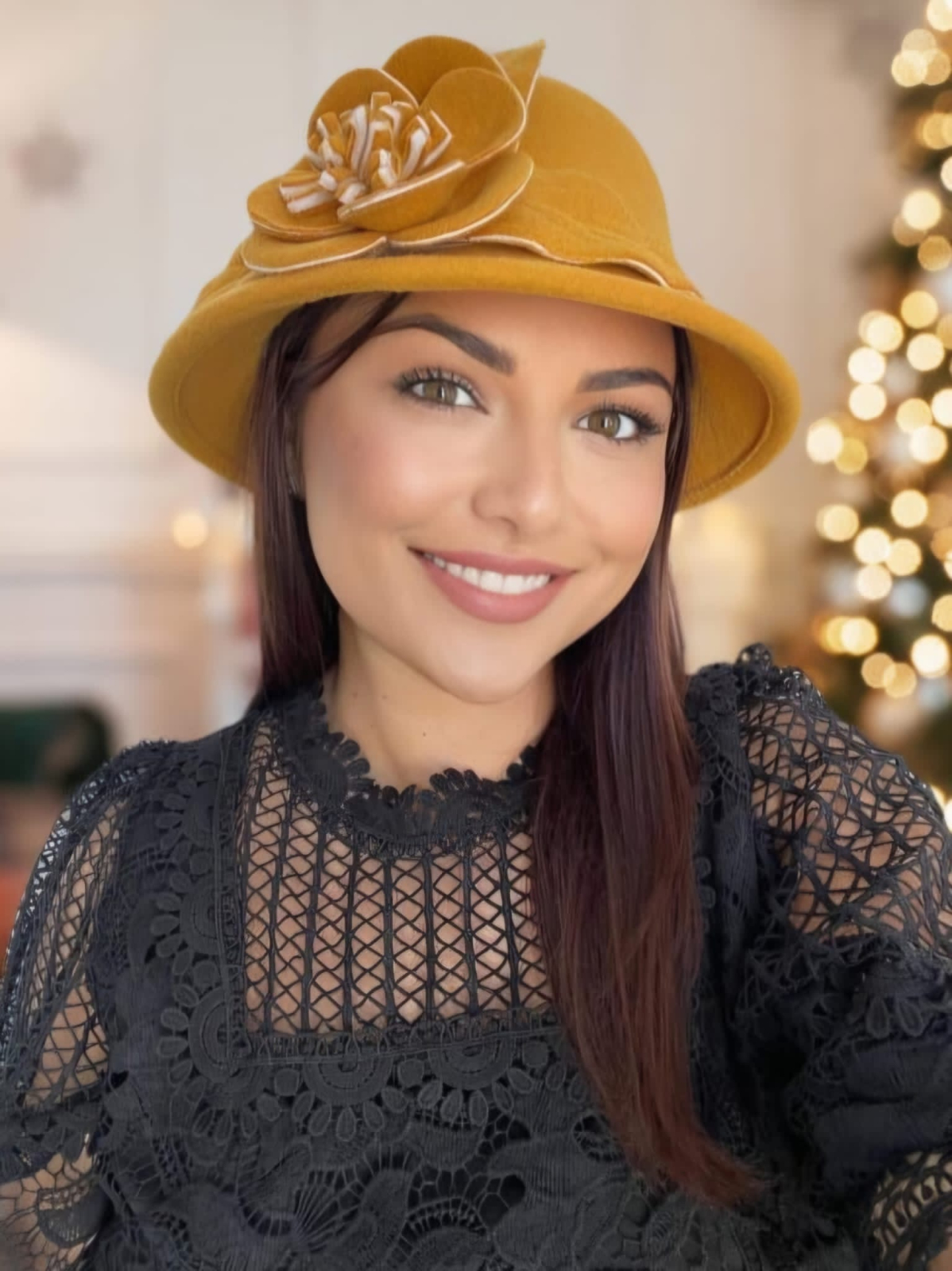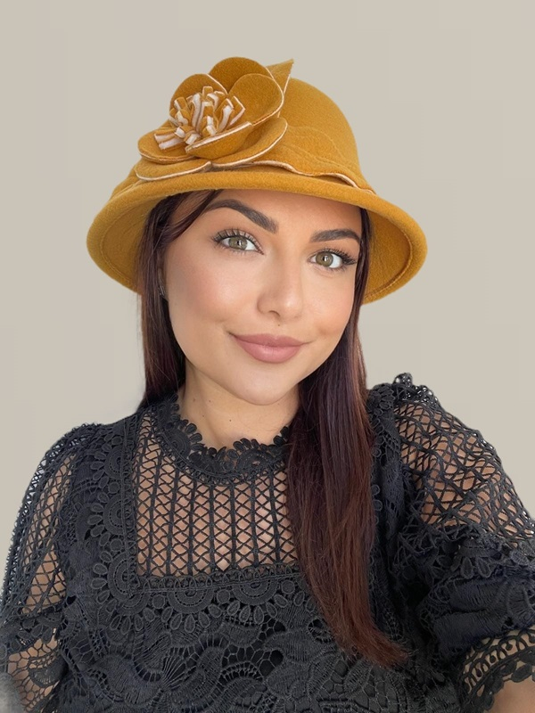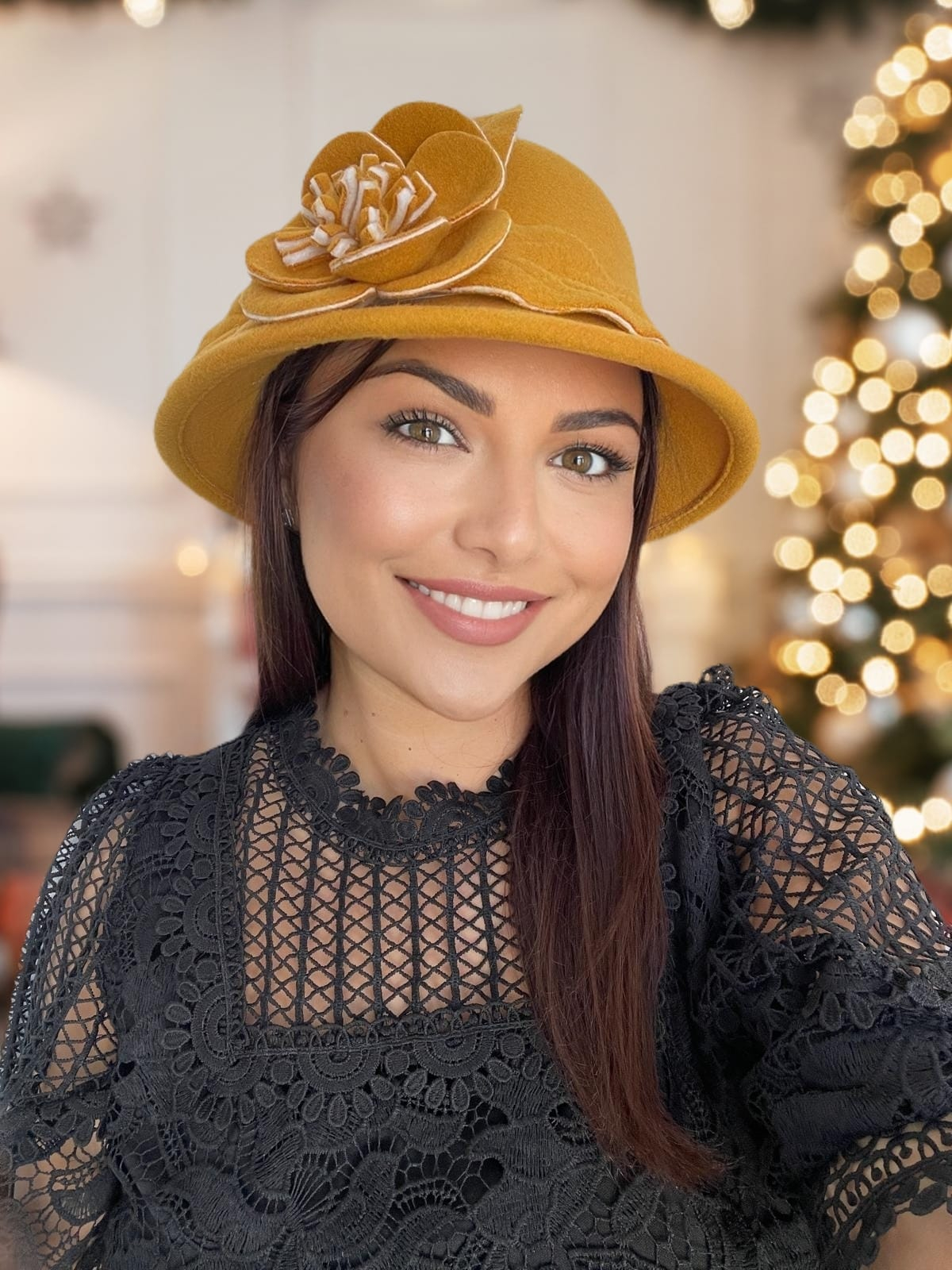 Palarii dama elegante cu boruri mici ROSE CHIC (GALBEN) - marime unica, reglabila