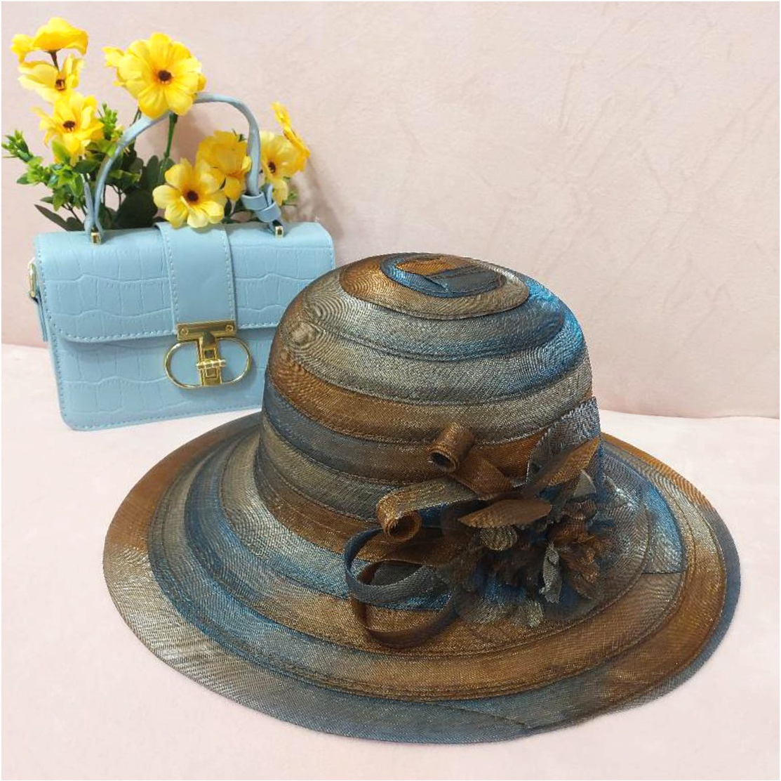 • Accesorizare: accesoriu floral dantelat in combinatia de culori a palariei