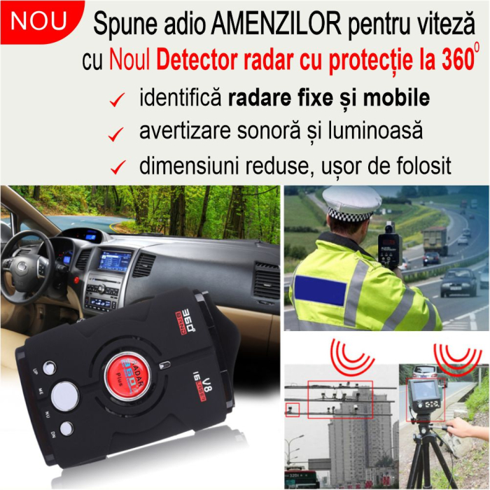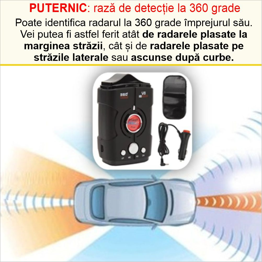 Oferta zilei pentru Detectorul Radar V8 360Plus include: