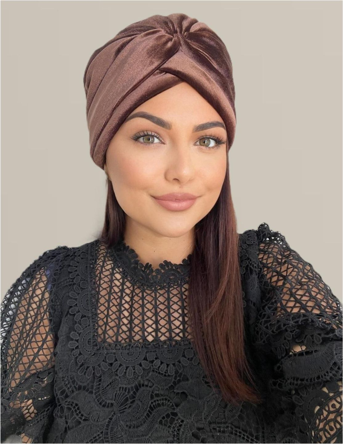 Marime UNIVERSALA: turbanele sunt realizate din catifea de lux usor elastica si au interiorul captusit cu material textil confortabil si putin elastic, astfel incat punerea pe cap sa se adaptez oricarei marimi (recomandat pentru marimea M, 53-58 cm)